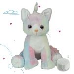 Mystic Cat is a playful friend who’s as positive as can be. She’s lovable, huggable, and loves chasing rainbows after a spring shower. Mystic is made of recycled fabrics and is part of the Plush for the Planet team focused on educating young ones on the importance of animal conversation.