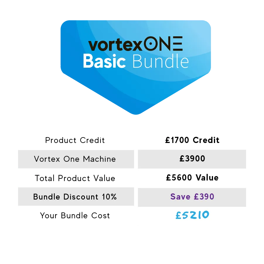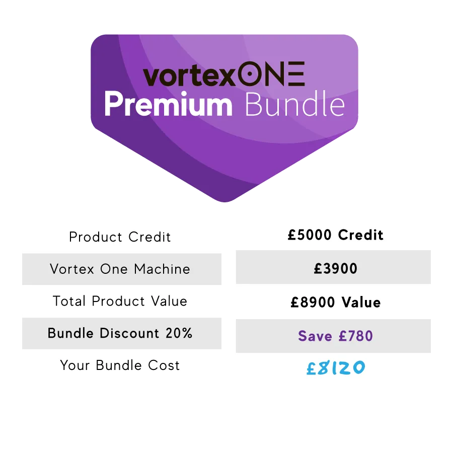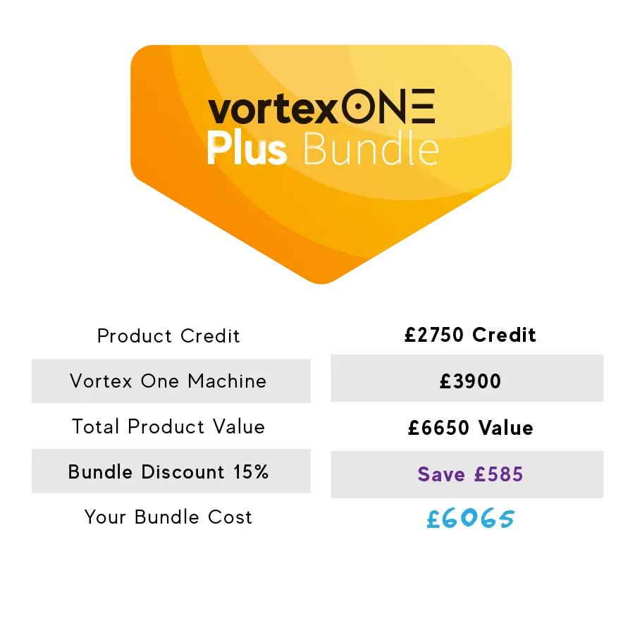 Note: Vortex ONE Machine shown in photo is not included
