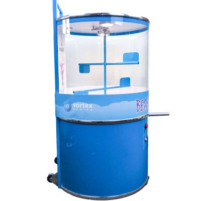 The vortex ONE Rolling Cart is the perfect add-on to provide a portable table option for your Vortex ONE. This commercial use cart provides the optimal stuffing height for your Vortex ONE, and includes a storage options within the unit. A removable shelf gives you flexibility with your storage capacity. The locking door gives you the ability to securely store valuables. The unit is finished with the Vortex Blue coloring, and is outfitted with commercial locking caster wheels.